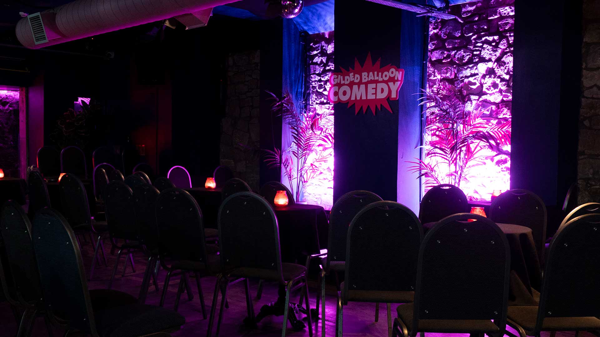 The stage area is raised and roughly 2.4m wide x 1.6m deep. The seating is on a flat in a cabaret style. There is a small space which can be used as a dressing room. Alternate configurations are available in this venue if required.
